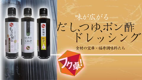 百有余年作り続けたフク醬油と、新たに加わったフク卓!シリーズ。私たちは食卓にフクのよろこびを送り続けてまいります。